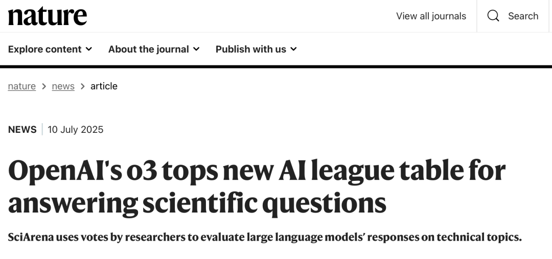 值得一提的是,SciArena剛發布沒多久就得到了Nature的特別報道,并被盛贊為「解釋大模型知識結構的新窗口」。