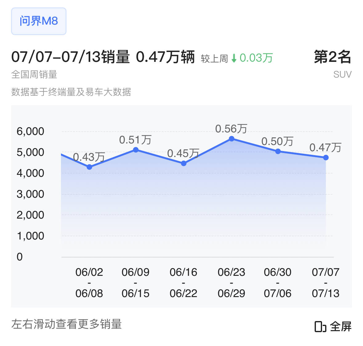 尤其是問界M8,近幾周來,問界M8的周交付量基本都在4700輛-5600輛之間。即將在8月份,問界還將正式推出問界M8純電版,業界紛紛猜測,隨著純電版進一步補充,問界M8的訂單以及交付量或還將持續提高。根據汽車博主孫少軍公布的上周訂單數據,包括問界品牌在內,鴻蒙智行上周新增訂單超過8000臺,作為鴻蒙智行最暢銷的SUV車型,問界M8的訂單很有可能還在持續增長中。