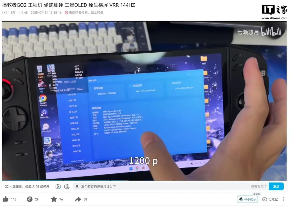 7 月 22 日消息,博主 @七瀬悠月 昨日在B站上手了尚未上市的聯(lián)想 Legion Go 2 掌機(jī)工程機(jī),這款掌機(jī)相比量產(chǎn)機(jī)的最大區(qū)別是將原本的銳龍 Z2 Extreme 處理器換為了 Z2。