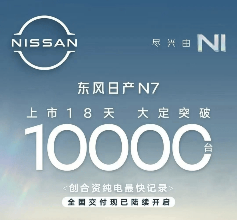 2025年6月,東風(fēng)日產(chǎn)(包括日產(chǎn)、啟辰和英菲尼迪品牌)銷量為4.9萬輛。其中,日產(chǎn)N7以6189輛的月銷量,斬獲合資純電車型銷量榜首。自5月15日開啟交付,截至6月30日,東風(fēng)日產(chǎn)N7累計交付突破10000臺。