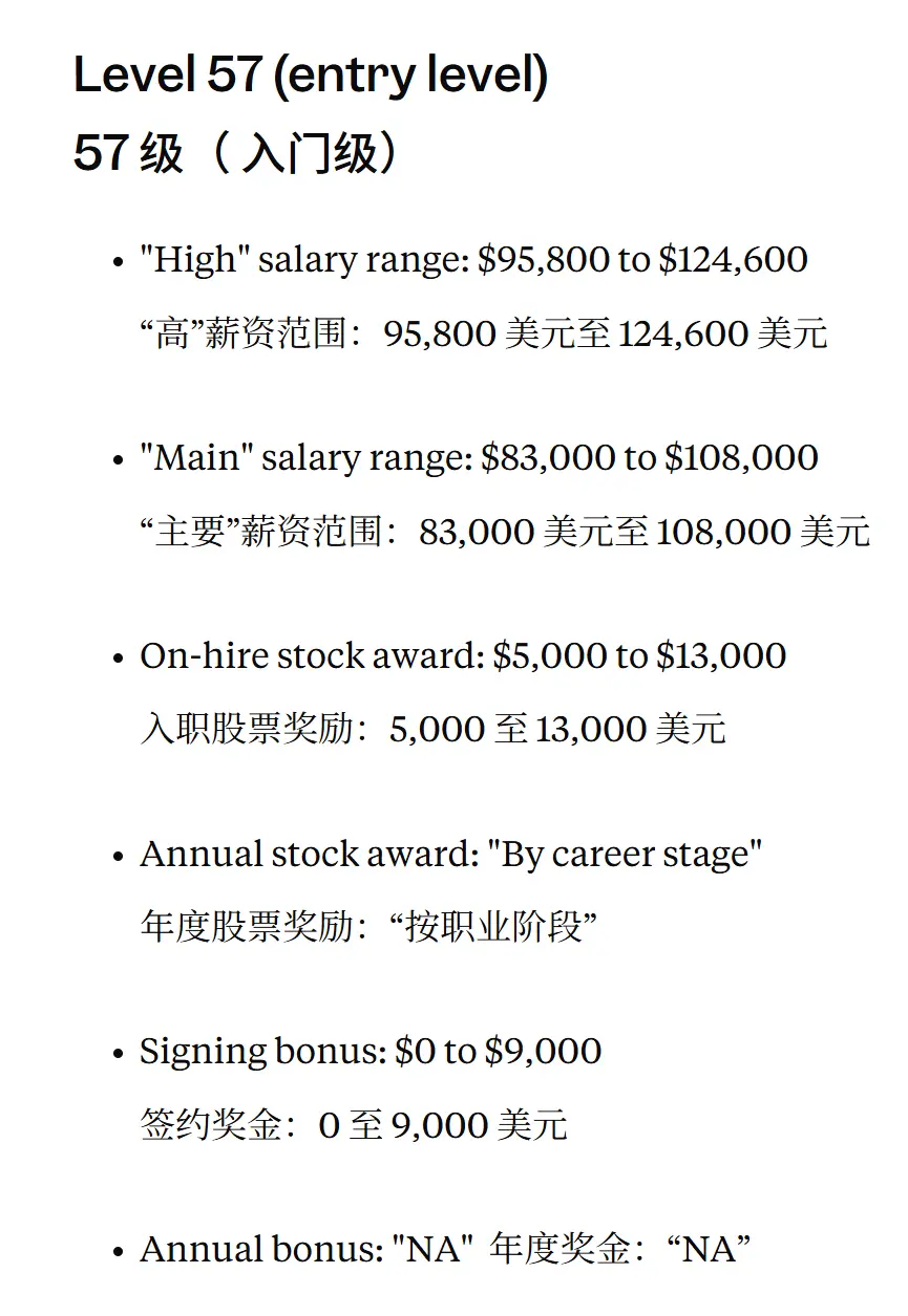 此外,70級(jí)工程師在入職時(shí),最高還能拿到190萬(wàn)美元的一次性股票獎(jiǎng)勵(lì),并且可能還有額外的簽約獎(jiǎng)金。