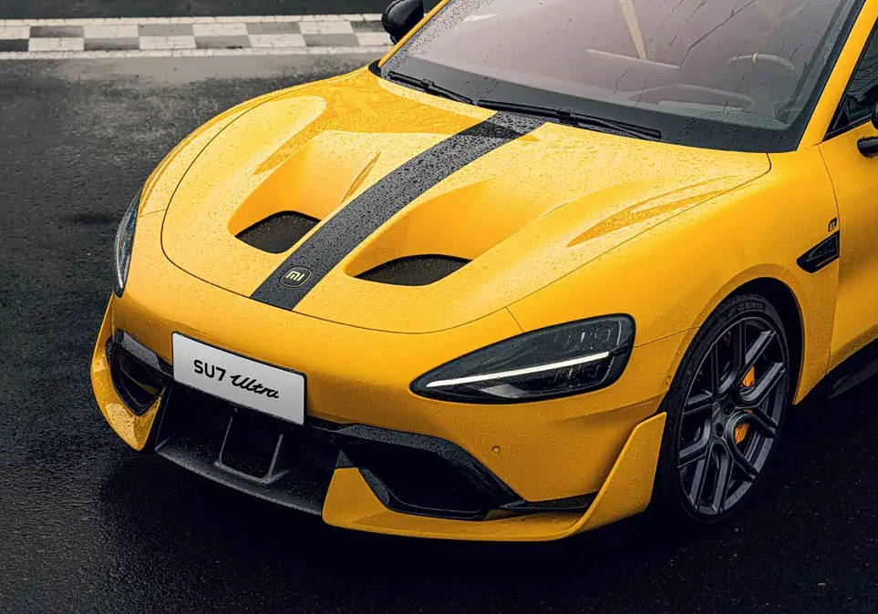 從整體造型來看,小米 SU7 Ultra 紐北限量版和普通版 SU7 Ultra 差別不大,但在細節處彰顯著獨特的運動氣質。車頭部分標配了帶有挖空通風的碳纖維前機艙蓋,前包圍還配備了帶有大尺寸分流器的擾流板前唇,搭配在一起更具戰斗屬性。同時,新車還有專屬的賽道拉花,以及碳纖維 + 24K 金的小米車標,進一步提升了辨識度。