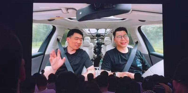 在i8上市發布會之前,就類似于電影前放映的廣告時間,大屏幕上播放了一條李想和理想前智能駕駛產品總監趙哲倫一起體驗VLA司機大模型的視頻。這條視頻從拍攝手法上來看和“廣告”片相差甚遠,甚至在車內對話的鏡頭完全沒有攝像,單純依靠車內架設的攝像機機位來完成。