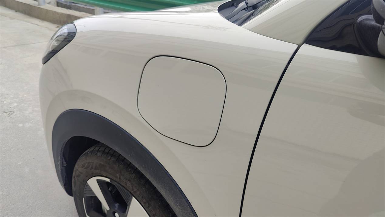 不過,車身的做工水平,依然菜得很穩定。成本的原因,充電口被安置在了前翼子板,以盡可能縮短高壓線束的長度,并且直流口和交流口被分置在左右兩側。然而充電口的罩蓋卻沒能貼合車身的曲面造型,留下了巨大且兩側不對稱的縫隙。