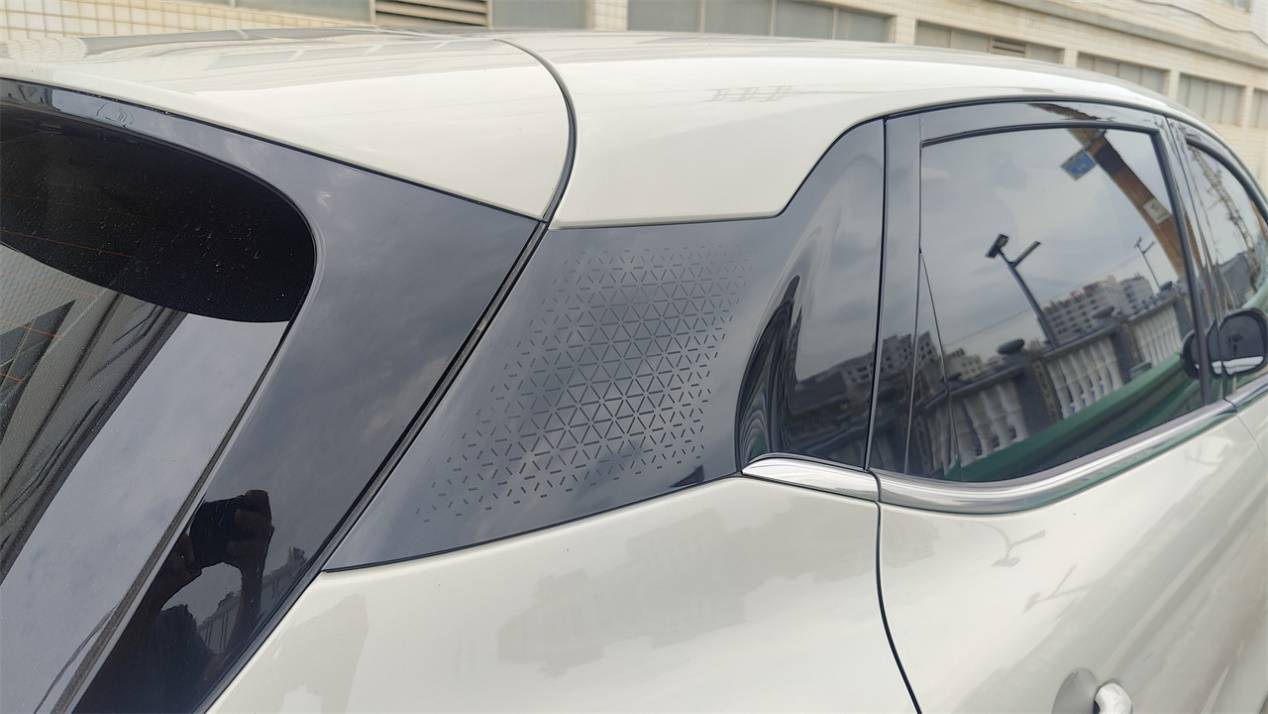但是得益于高了約兩萬的主力價位區間,繽果PLUS看起來顯然要比繽果精致多了。光是車身的曲面變化就豐富不少,造型風格也更接近于方正,審美更貼近男性化。沒有了分色車身的涂裝,視覺質感上也沒那么像玩具。不過C柱還是保留了一面帶紋路的黑色亮面裝飾板來分割上下車身,和ID.3的修飾手法很相似。