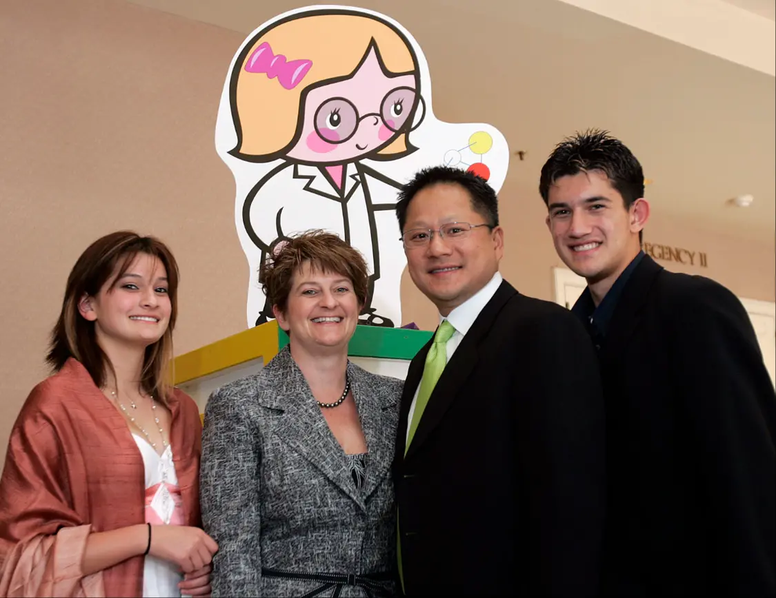 ▲2007 年的黃氏家族(從左到右):麥迪遜、洛麗、黃仁勛和斯賓塞.