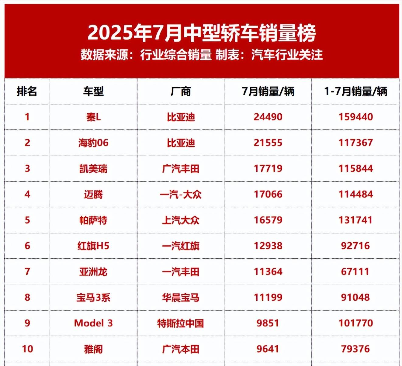 不過,伴隨著車市的大洗牌,國內市場的格局也產生了深刻的變化。從剛剛過去的7月份來看,B級車市場共有8款車型銷量超萬輛,分別為秦L、海豹06、凱美瑞、邁騰、帕薩特、紅旗H5、亞洲龍、寶馬3系。雖然在榜單前列還是有很多咱們熟悉的經典車,但也有一些傳奇車“風光不再”,比如。