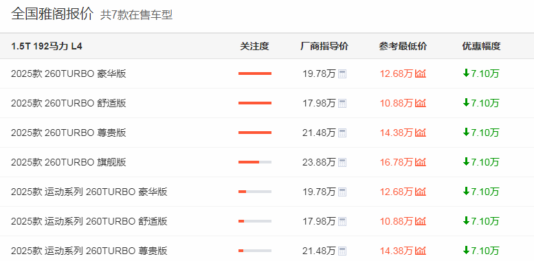 要知道,現在雅閣的優惠力度還相當大,根據車主之家顯示,它在全國共有7款在售車型,優惠幅度超過了7萬元,這使得該車的裸車最低價跌破11萬元。從以前的20萬級別直接價格腰斬,甚至還都難以保住自己的份額,雅閣的地位被動搖得很厲害。