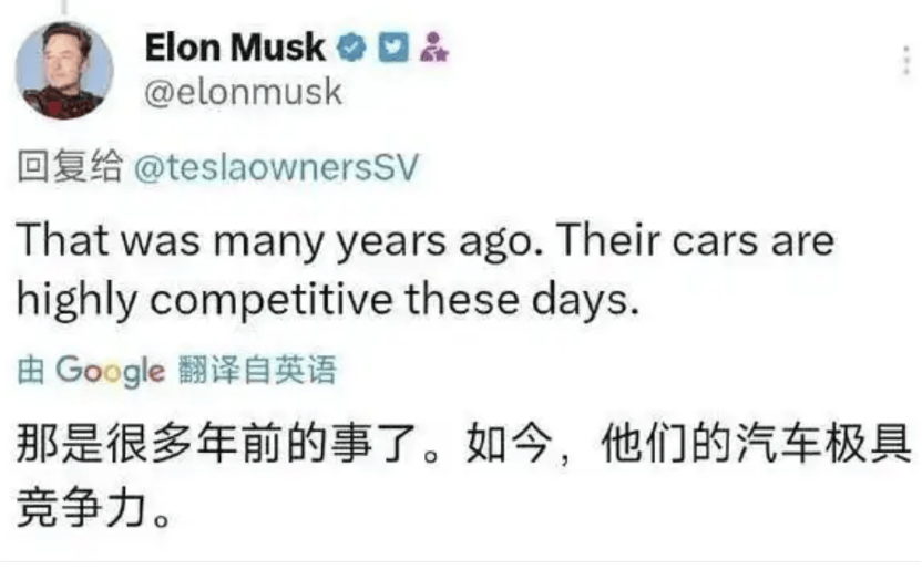 反轉不要來得太快!僅僅14年,新能源與電動車已經換了人間。雖然在面對記者們尖銳的問題時,曾經不可一世的馬斯克還在堅持說:"我始終專注于打造理想中的完美產品,不會過度關注同行動態“。哈哈,好一個”不關注“,那是關注了也是被打臉吧。人家又問他,多年前不是說"我不認為他們能對行業格局產生影響。"嗎,到底是做實業的鋼鐵俠,他本人后來在社交媒體上回應說:那是多年前的事了,如今,他們的汽車極具競爭力。