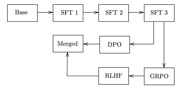 預訓練:模型使用FP8精度在20萬億個token上進行預訓練,采用Warmup-Stable-Decay學習率調度。隨后進入持續預訓練長上下文擴展階段,使其在不降低其他基準測試性能的情況下達到128k的能力。