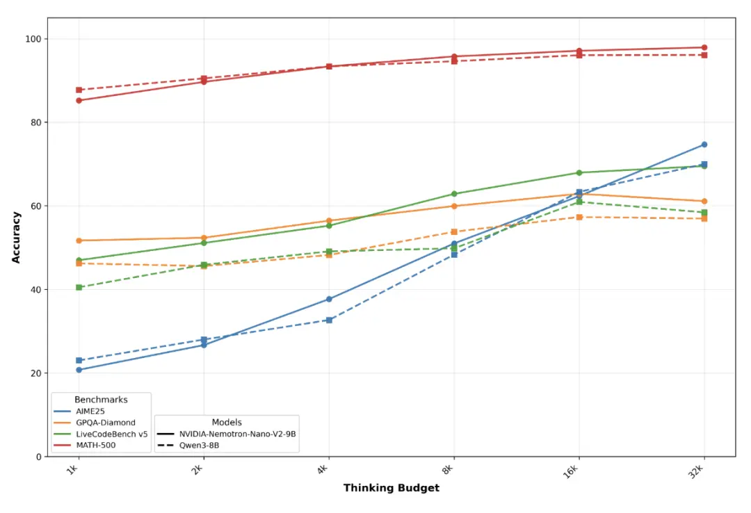 模型在響應用戶查詢或執行任務時,會首先生成推理過程(reasoning trace),隨后輸出最終答案。該模型支持“思考”預算控制,在推理過程中,用戶可以指定模型被允許“思考”的token數量。