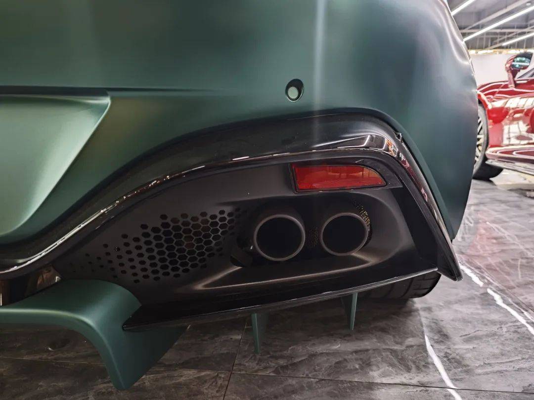 外觀上,這經典的啞光綠色車漆+特殊拉花設計,足以讓你的“紀念版”車型顯得與眾不同。這輛Vantage F1前臉采用了大嘴式格柵,近乎貼著地面的碳纖維前唇,將它的戰斗氣息極大地激發了出來。