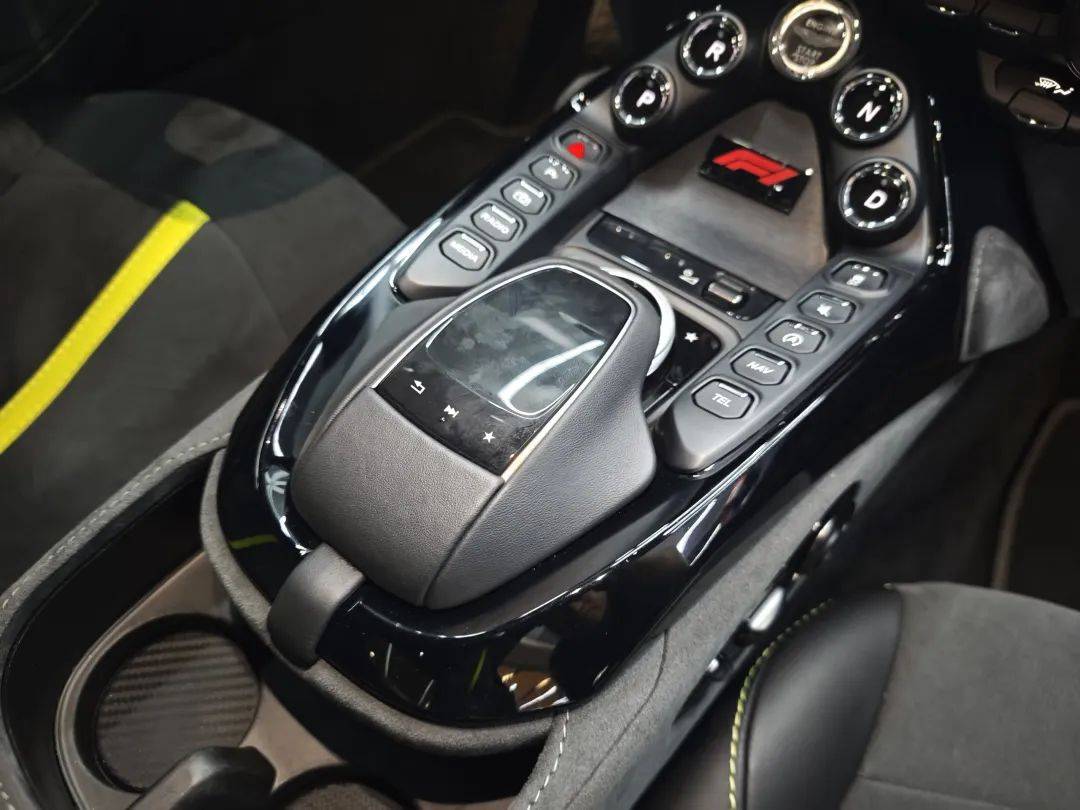 在內飾方面,Vantage F1同樣顯得十分特別。比如說在內飾的材料上,設計師采用曜石黑色皮革和幻影灰Alcantara材質包裹,既讓內飾在視覺上產生一種享受感,也讓它的內飾觸感拉到滿分。