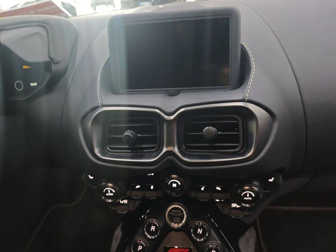 內飾和DB12接近,風格上主打一個干凈利落,中央空調出風口向兩側延伸的線條造型帶來很強的力量感,提醒大家Vantage的本質上是一款硬派跑車。