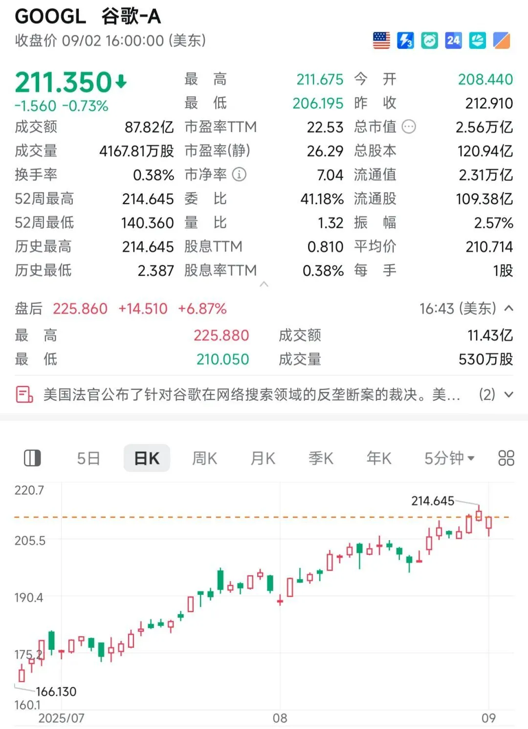 Alphabet 股價在盤后交易中上漲超6%,創造歷史新高。