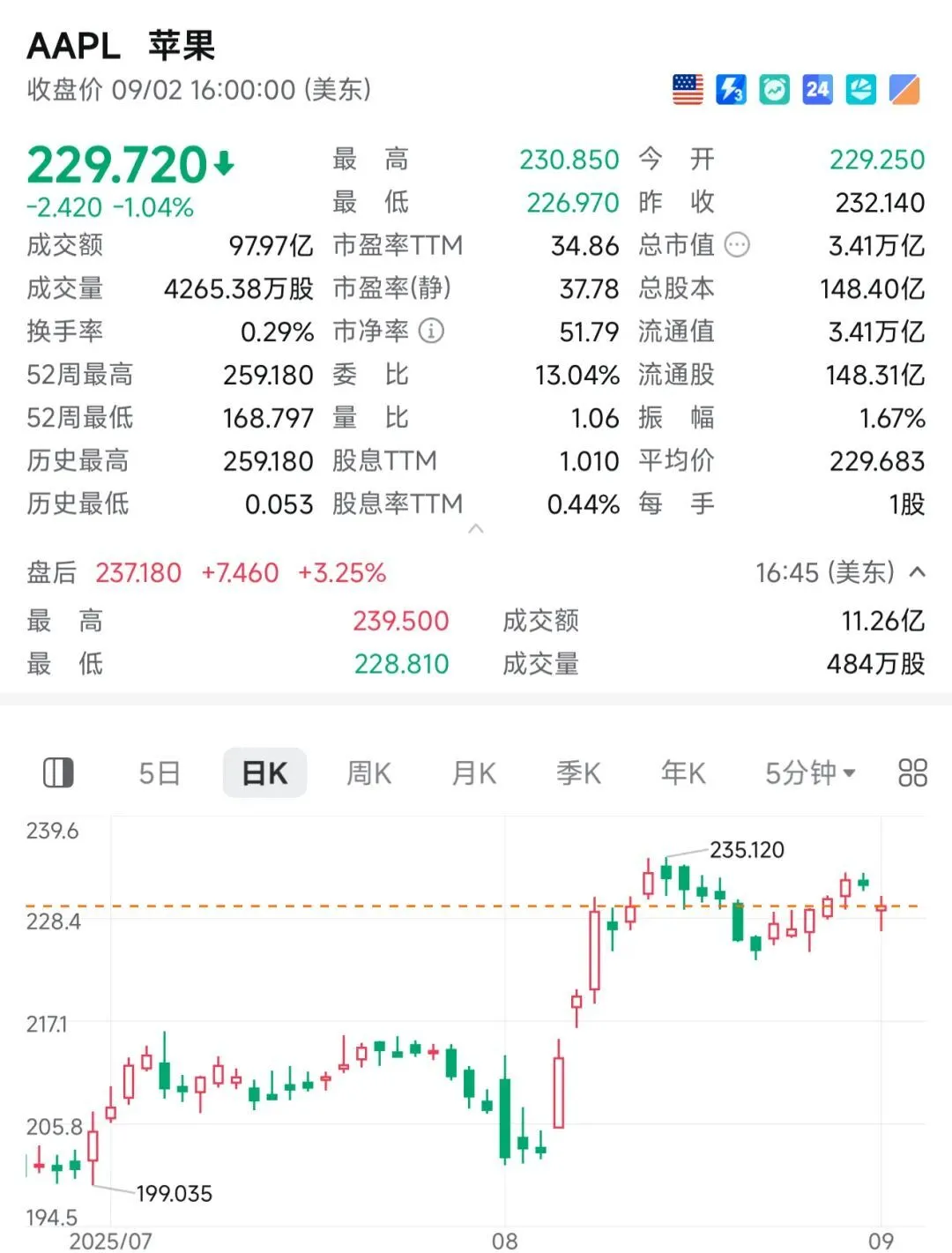 蘋果股價周二盤后上漲 4%。