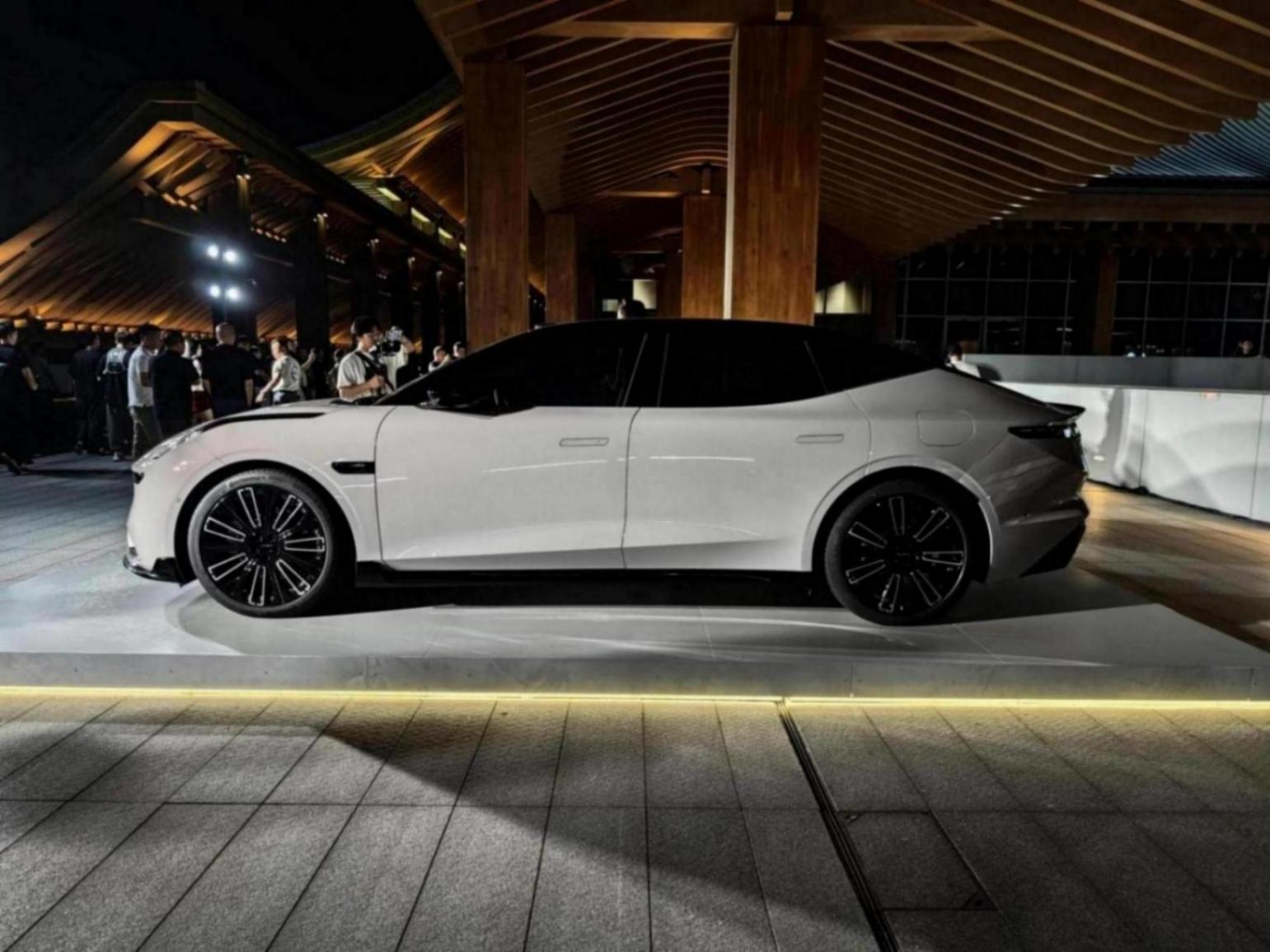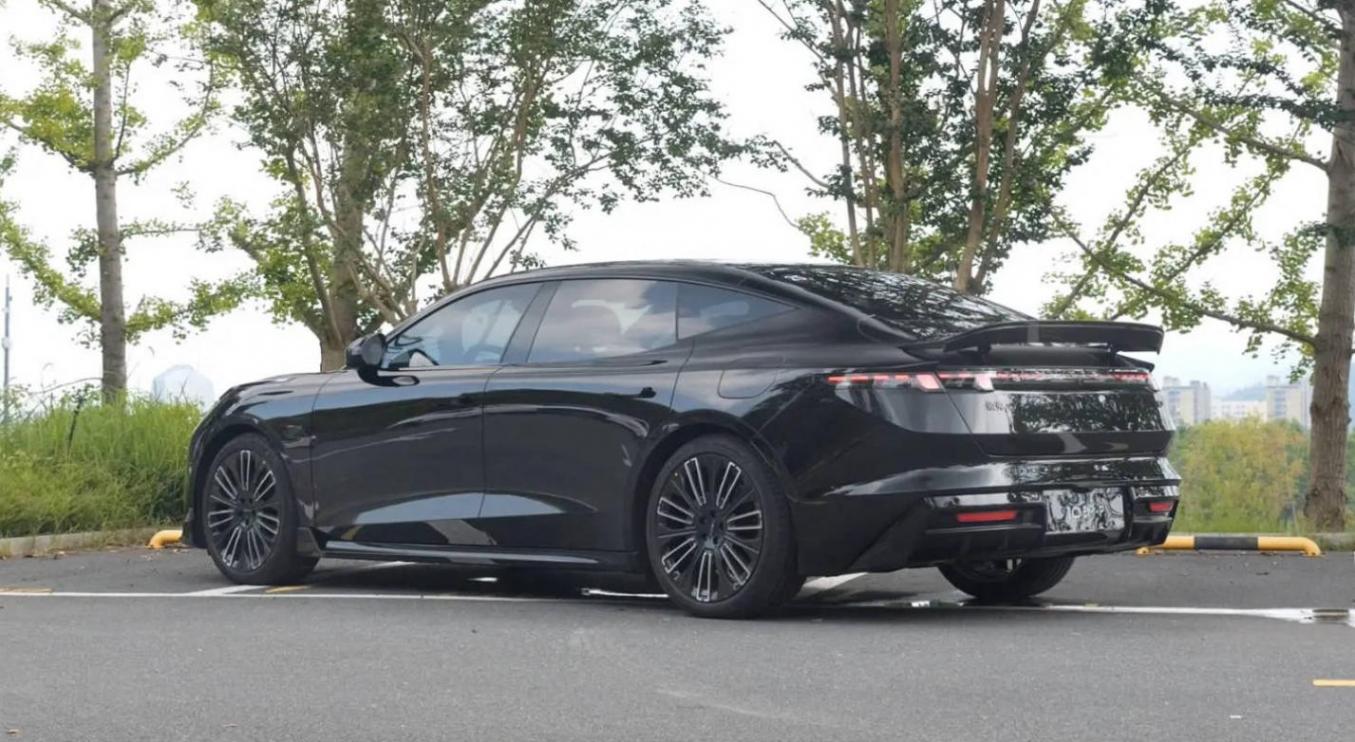 來到側面,領克10 EM-P依舊采用溜背式造型,并配備無邊框車門以及隱藏式門把手設計。尺寸方面,新車長寬高分別為5050/1966/1487mm,軸距為3005mm,另外提供19英寸星輝輪圈和21英寸鋒曜輪圈兩種選擇。車尾則依舊保留標志性的盈能貫穿式尾燈,辨識度非常高。