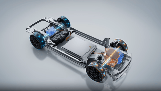 再配合上后橋P4電機可實現四輪驅動,系統綜合最大功率達390kW,最大扭矩755N?m,零百加速最快僅需5.1秒,無論是城市道路還是高速超車并線,它都能輕松應對。