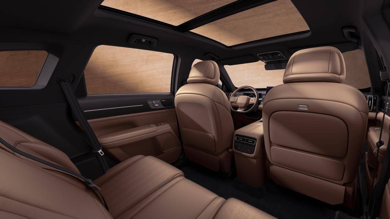 L,其以“磁懸浮豪華電七座SUV”為定位,憑借四大越級實力重塑市場標準:30萬級性能(搭載奇瑞鯤鵬2.0TD發動機+自研8AT變速箱)、40萬級體驗(云臺底盤+CDC電磁懸掛)、50萬級舒適(12層舒云座椅+32變電七座布局)、百萬級安全(86%高強度鋼車身+整車終身質保)。空間上,2820mm超長軸距搭配“超級大五座/全家大七座”雙布局,七座版支持4種智能大床模式,滿足全場景出行;設計上,晨霧白等4種車色、溫馨棕/典雅橙內飾,搭配15.6英寸向日葵屏、64色氛圍燈,盡顯豪華質感。