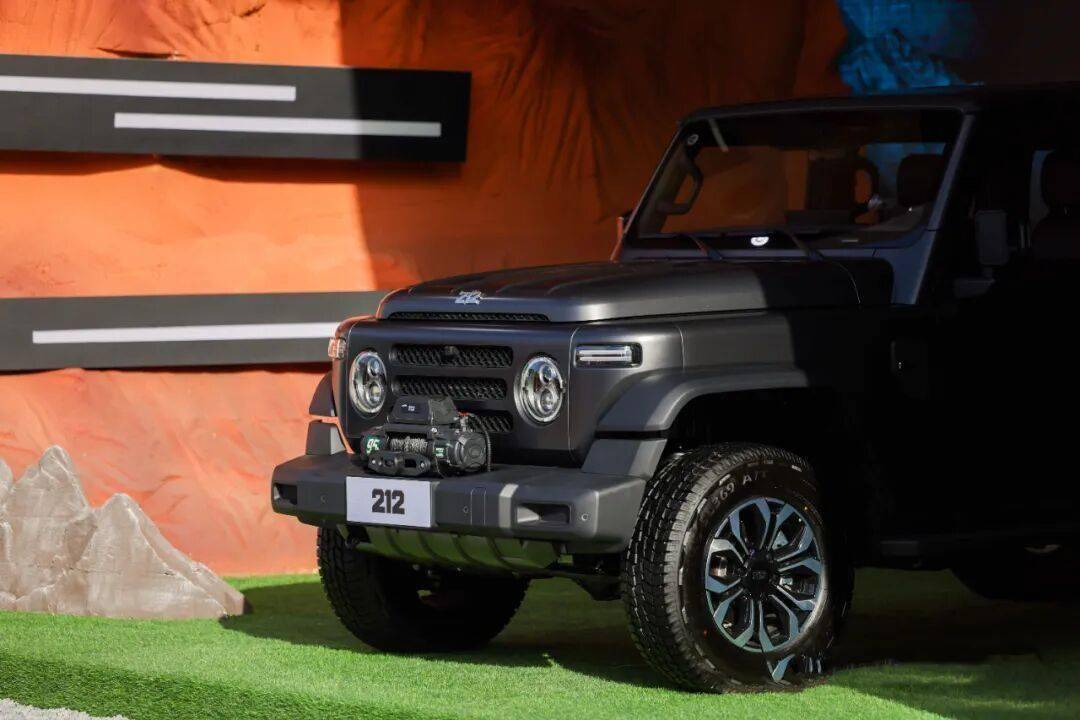 現場看到,全新的212車型相當漂亮。可以選裝越野配置,比如前后橋機械限滑電控差速鎖、高強度電動絞盤、多段阻尼可調的氮氣減振器等。