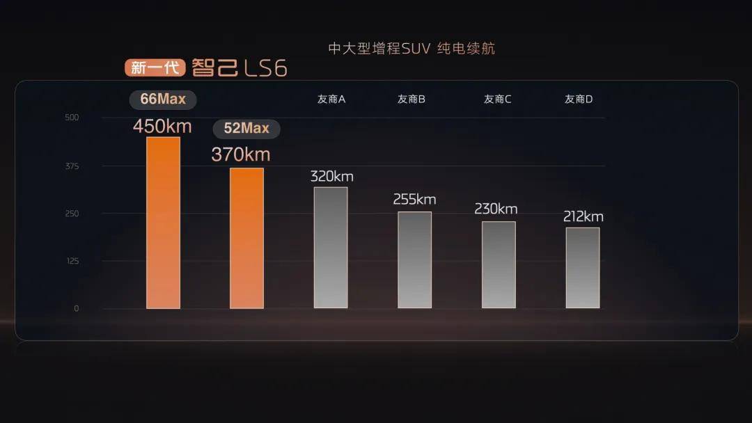 從賬面參數來看,增程LS6上的恒星超級增程系統還是挺能打的,可選66千瓦時電池組,CLTC純電續航 450km,15 分鐘即可補充 310km 續航,綜合續航更是突破1500km。