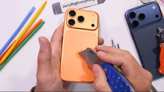 YouTuber @JerryRigEverything 在最新測試中發現,iPhone 17 Pro 確實存在易劃傷部位,但并非零售店所見的 MagSafe 區域,而是相機部分。如果擔心 iPhone 出現劃痕,可以考慮配合手機殼使用。