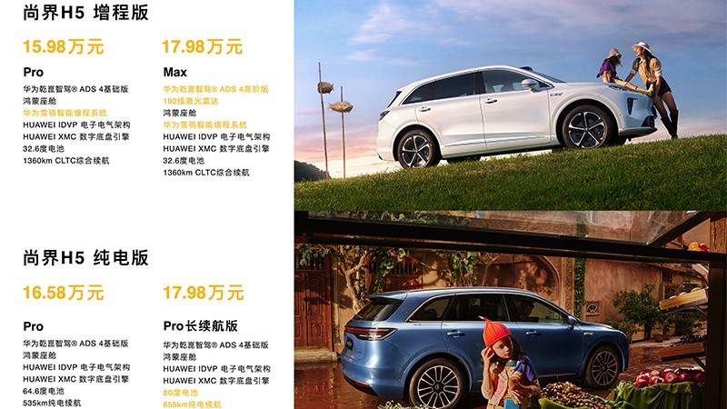 不過,放眼整個國內(nèi)市場,價格在20萬內(nèi),同時帶滿血華為的增程車并不多。而尚界H5把以上的三個條件做到了17.98萬元。