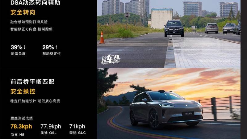尤其是在底盤上,因為有了華為華為XMOTION數(shù)字底盤的加持,尚界H5百零制動距離僅34.2米,優(yōu)于同價位多數(shù)競品;麋鹿測試78.3km/h,優(yōu)于奧迪Q5L和奔馳GLC,拉開了和傳統(tǒng)燃油車的差距。