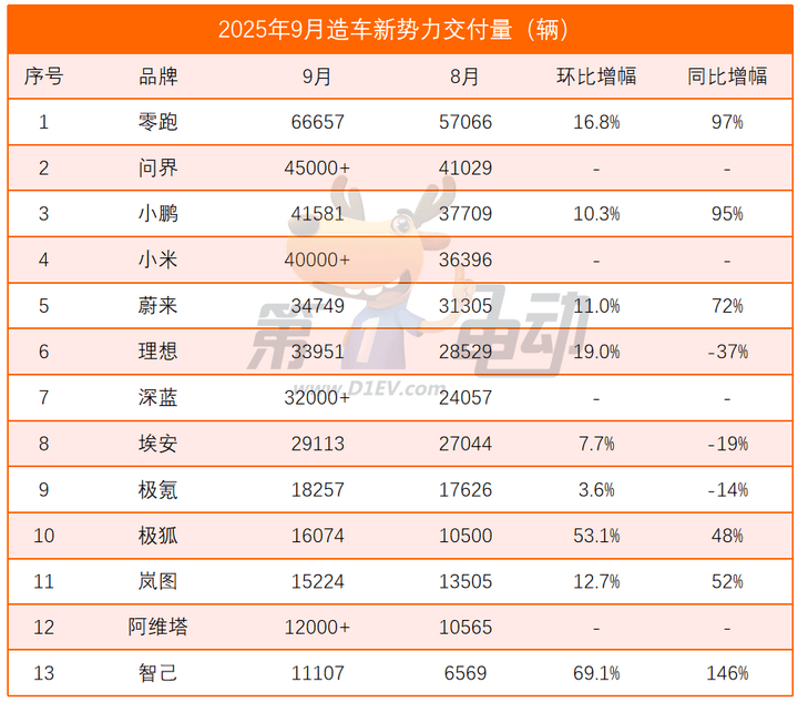 9月新勢力榜:零跑首破6萬輛衛冕七連冠,近10個品牌創歷史新高