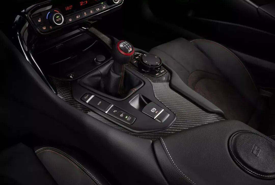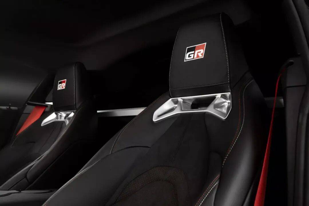 終極版在內飾上新增了帶“GR”標識刺繡的Alcantara材質拼接運動座椅、紅色安全帶以及紅色對比縫線,以此凸顯其與賽車運動的關聯。8.8英寸信息娛樂系統支持安卓Auto與蘋果CarPlay互聯功能,并搭載12揚聲器JBL音響系統。