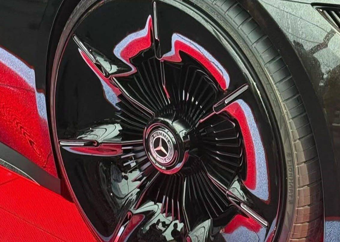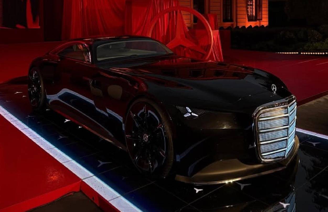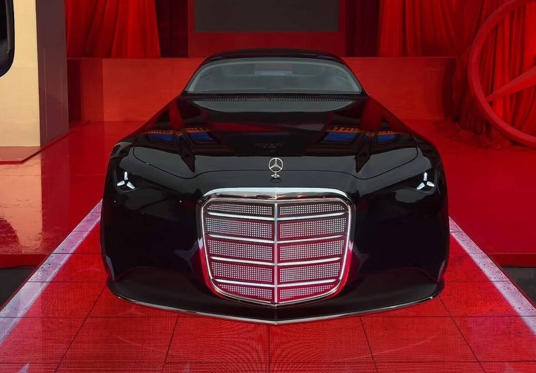 隨著汽車的電動化,如今的進氣中網更像是裝飾品,而非真正的功能部件,因此這款新車可以做成發光格柵,與純黑色的車身進一步形成對比,配合奔馳三叉星車燈,前臉的辨識度要比如今的量產奔馳更高。