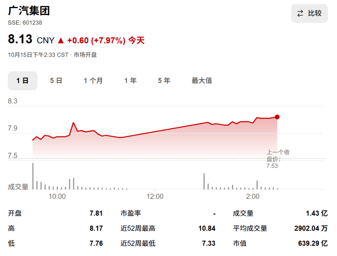 官宣后的首個交易日,廣汽集團的A股上漲了7.97%(截止寫稿時),H股上漲了10.16%,領跑整個汽車板塊。要知道,去年11月30日,廣汽官宣與華為重新牽手的時候,A股股價也不過上浮3.6個百分點罷了。