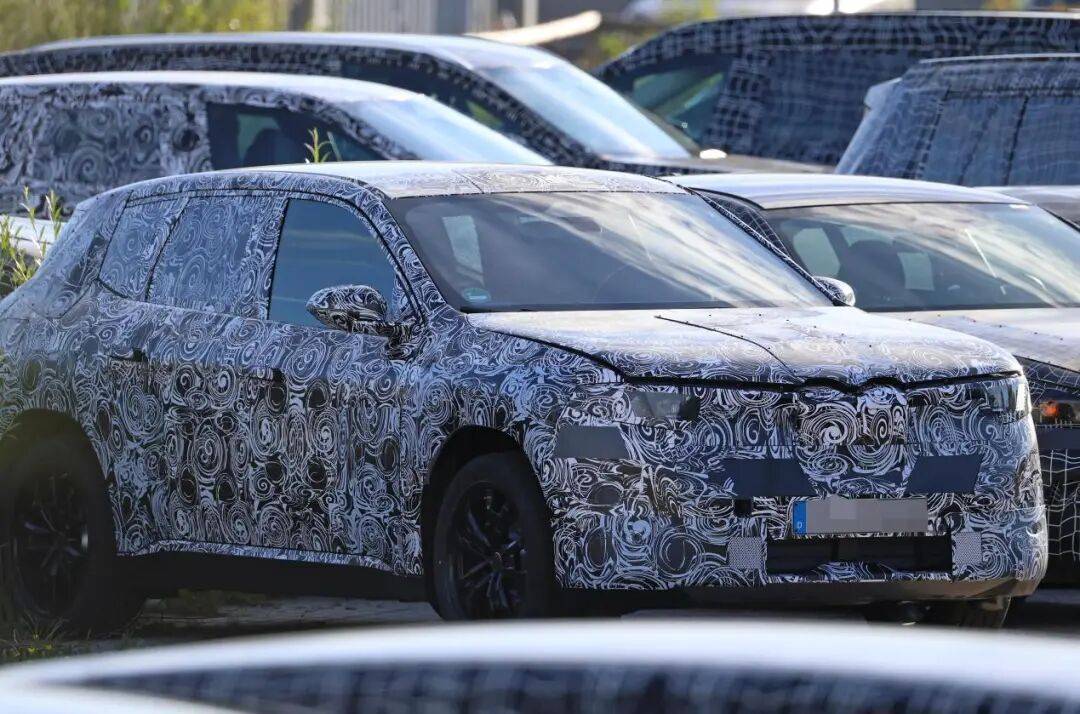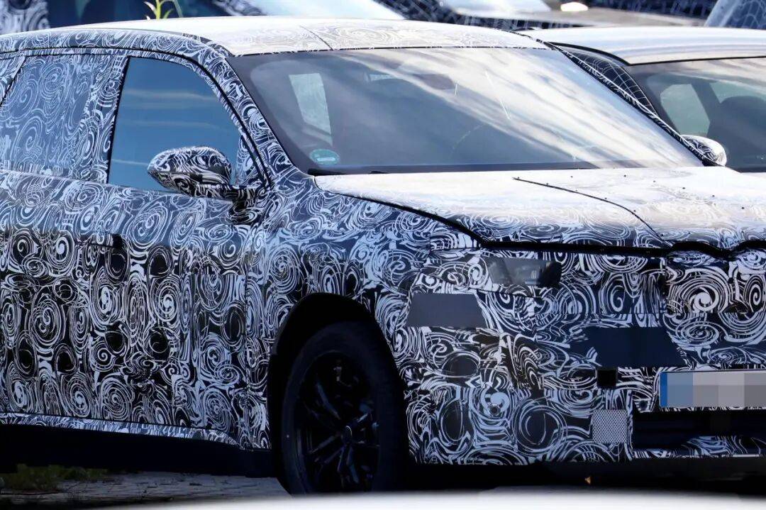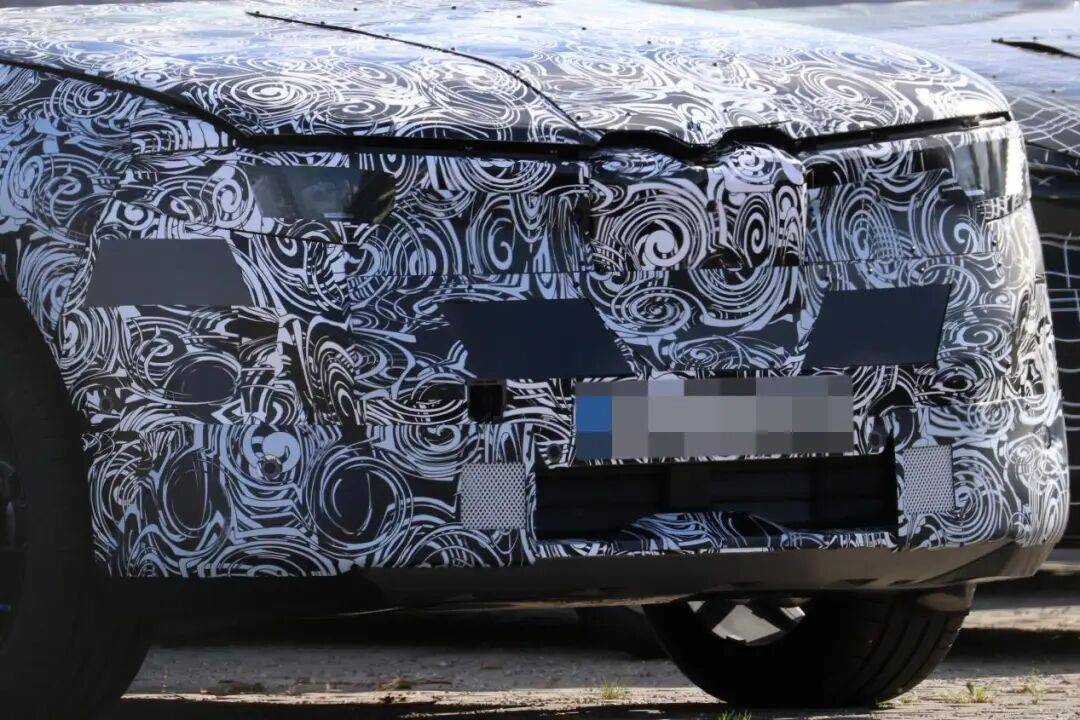 這是代號為NB5的新一代iX1首次出現(xiàn)在我們面前,在令人眼花繚亂的偽裝花紋之下,顯然隱藏著一個帶有垂直雙腎格柵的新世代風(fēng)格車頭——盡管寶馬近來也為一些現(xiàn)款車型進行了新世代風(fēng)格的小改款,但有其它證據(jù)證明我們眼前的是一個全新產(chǎn)品。