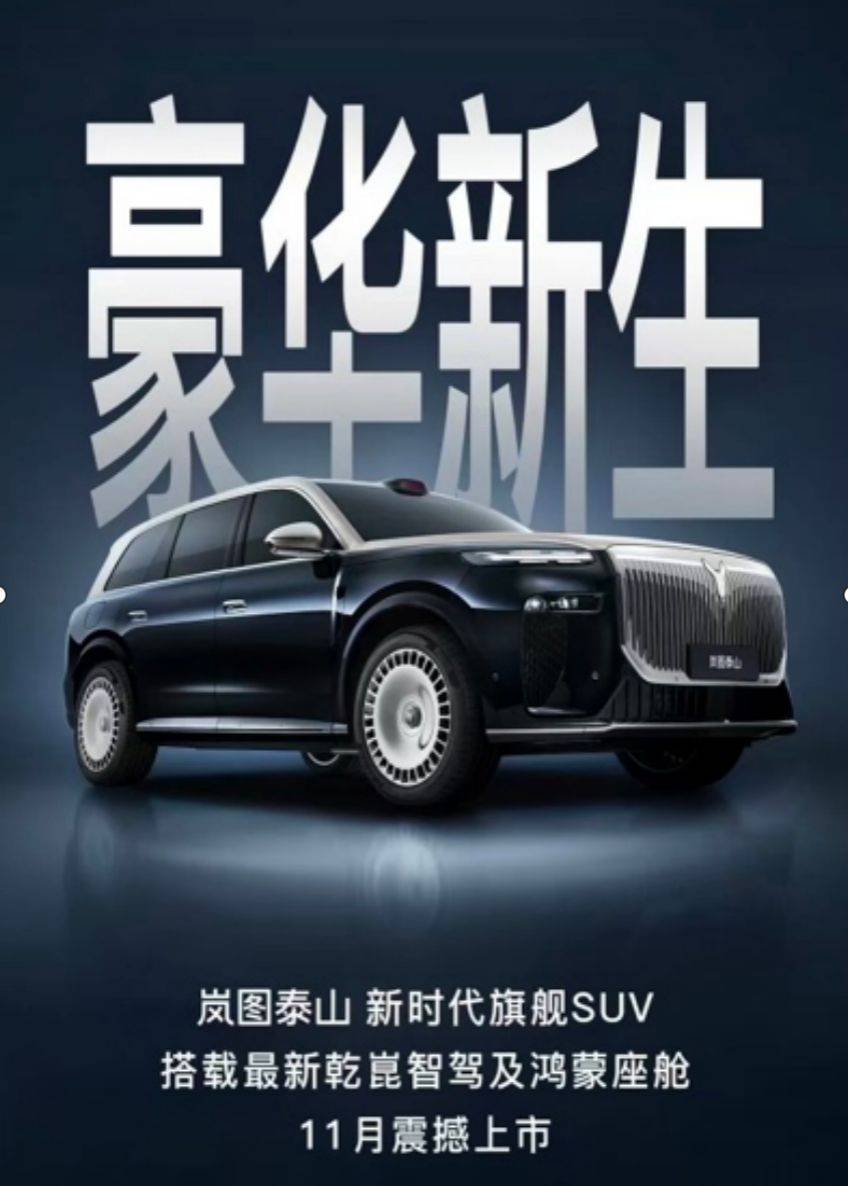 大六座SUV市場進入“戰(zhàn)國時代”,群雄爭霸愈發(fā)激烈。10月20日,據(jù)嵐圖官方透露,其新時代旗艦SUV嵐圖泰山將于11月正式上市。結(jié)合官方海報配文可以確認,嵐圖泰山將搭載華為最新乾崑智駕及鴻蒙座艙5.1。