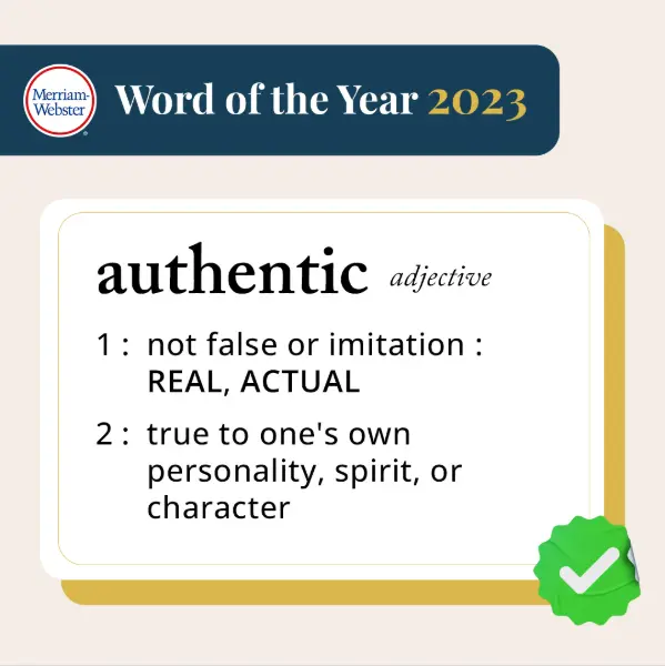 韋氏詞典在 2023 年選擇的年度詞匯,是「authentic」真實的,同時也有「本真」的意思。這個詞存在已久,但在充斥 deepfake 和 AI 生成內容的一年里,它的脫穎而出,意義非凡。