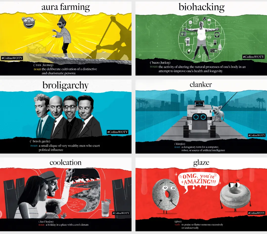 「biohacking」指生物黑客式的自我改造;「broligarchy」調侃科技富豪把持權力的「兄弟寡頭政治」等。這些五花八門的新詞一起勾勒出 2025 年的圖景:從工作到娛樂,AI 正重塑我們的語言和生活方式。
